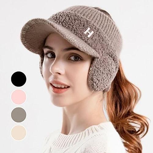 [에이치플러스몰]귀여운 귀도리 니트썬캡 선바이저 골프모자
