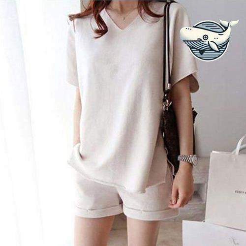 [에이치플러스몰]편안한 여름 브이넥 반팔 원마일 웨어 스타일링