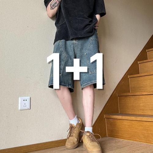 [노프라브럼]1+1 남녀공용 7부 여름 쿨 버뮤다 데님팬츠 반바지 1컬러