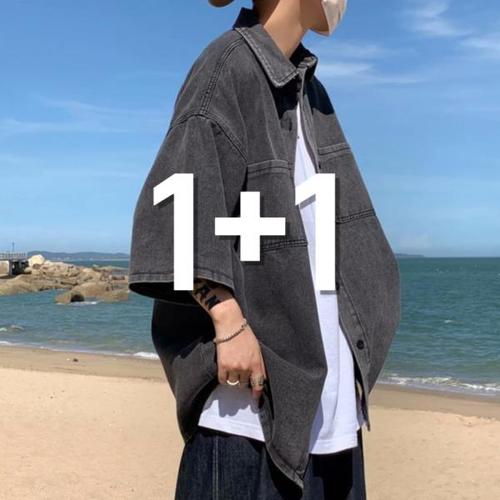 [노프라브럼]1+1 남녀공용 여름 쿨 데님 청 오버핏 남방 셔츠 2컬러