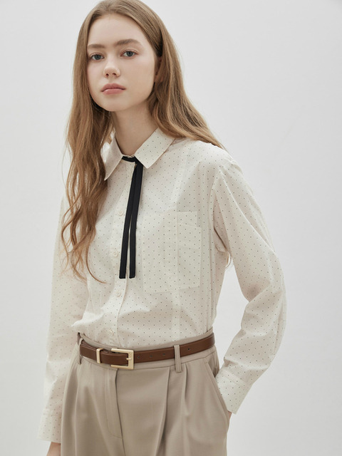 [씨씨콜렉트] 도트 패턴 타이 셔츠 블라우스 IV_C261MSC001