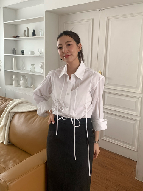 [씨씨콜렉트] 백 타이 셔링 블라우스 IV_C254MSC031