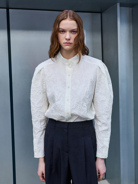 [씨씨콜렉트] 크링클 밴드넥 타이 블라우스 IV_C262MSC702