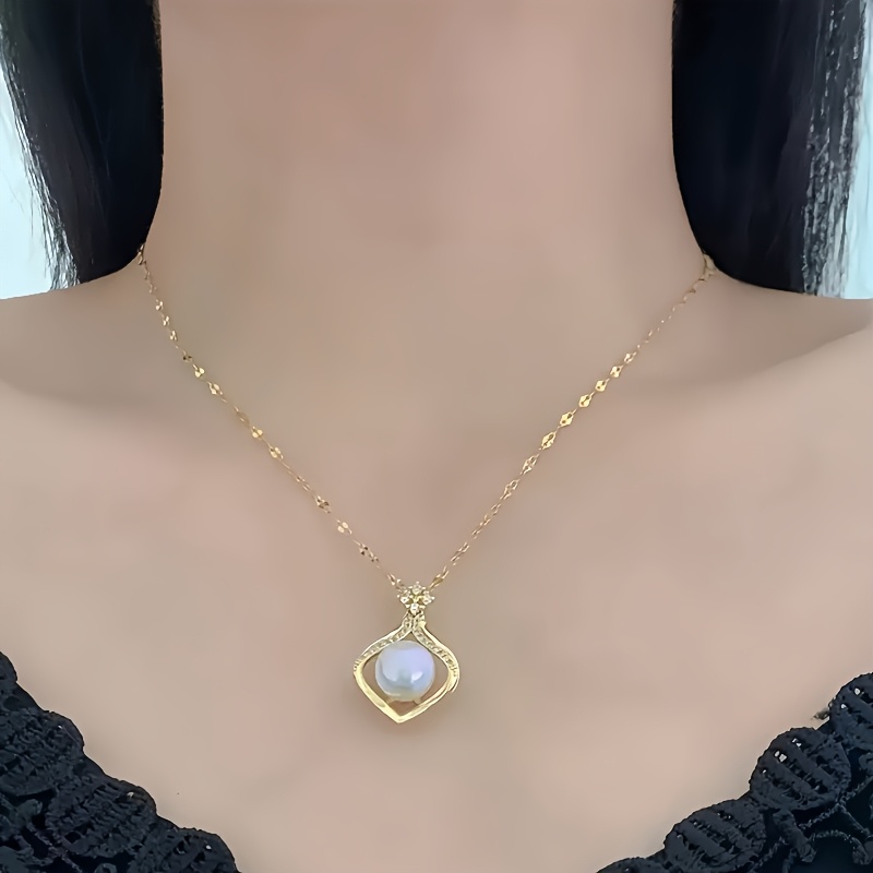 TEMU 여성을 위한 고품질 저자극 스타일리시하고 우아한 스테인리스 스틸 I8K 금도금 펜던트 목걸이 (인조 진주 장식), 고급스럽지만 심플하여 일상복 및 선물용으로 완벽합니다.