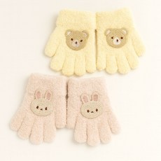 TEMU 아기와 유아용 귀여운 토끼와 곰 장식이 있는 가을 겨울용 두꺼운 플리스 안감 따뜻한 다섯 손가락 장갑 1쌍, 야외 놀이 및 일상 착용에 적합, 0-24개월 어린이용