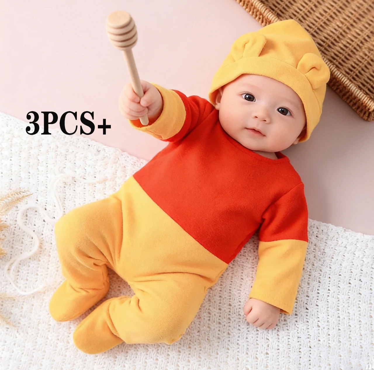 3PCS 신생아 남아 사진 촬영 소품 곰 귀 모자 사진 촬영 의상 아기 발싸개 점프수트 오버롤 유아 사진 소품
