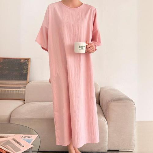 큐니티 [국내생산] 여름 링클 바스락 반팔 절개 백포켓 체형커버 롱 원피스 (3color)