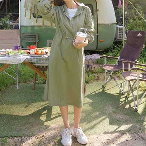 슈팅스타 / 아노락 후드 집업 스트랩 캐주얼 원피스 886759