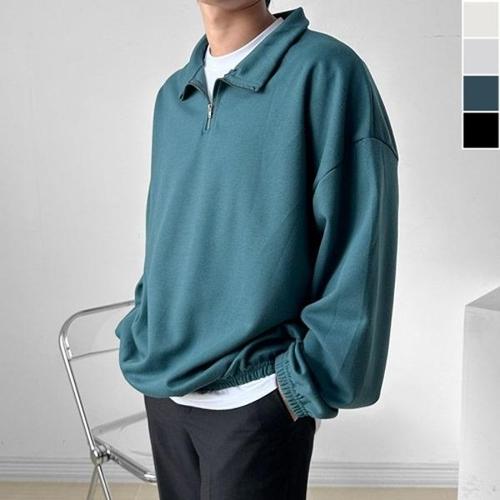 룩샵 남자 남성 데일리 오버핏 무지 카라 특양면 반집업 맨투맨