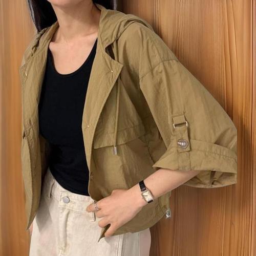[신상오픈런]여성 후드 롤업 소매 아노락 바람막이 점퍼 (32642467)