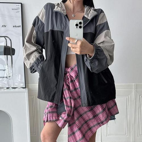 여성 아노락 점퍼 루즈핏 후드 봄바람 여성 바람막이 점퍼 여름 가을