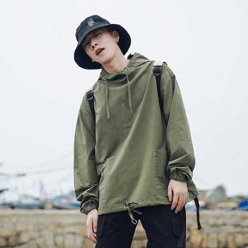 [옷자락]남성 힙스터 버튼 아노락 후드 바람막이 티셔츠