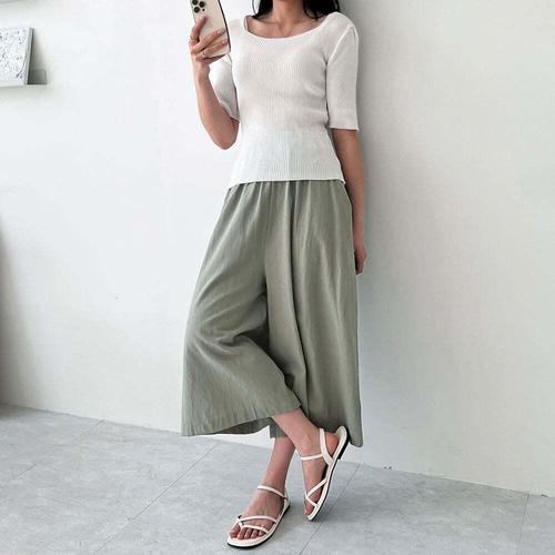 [셀럽하우스]티유 LEAV0426 8부 마 와이드 통바지 SD-240512