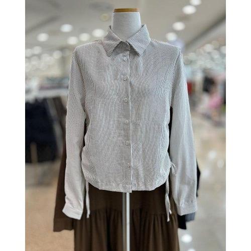 [모노무드]MNO 원컬러 세로 줄무늬걸스 오피스 톱셔츠 심플