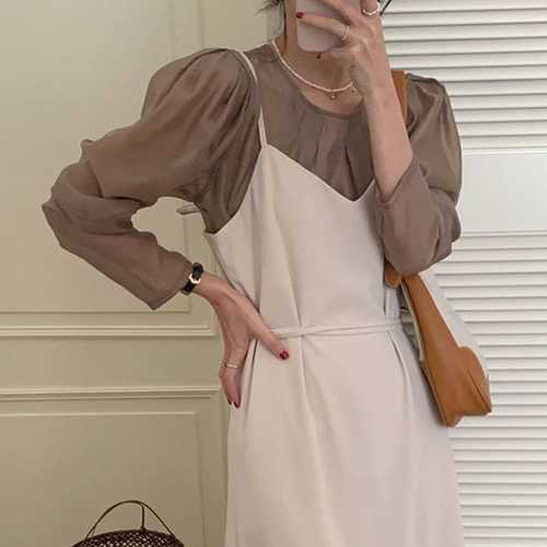 (런칭가79,900)[케이수]25SS 쿨웨이프 쉬폰 시스루 셋업(자켓+원피스)