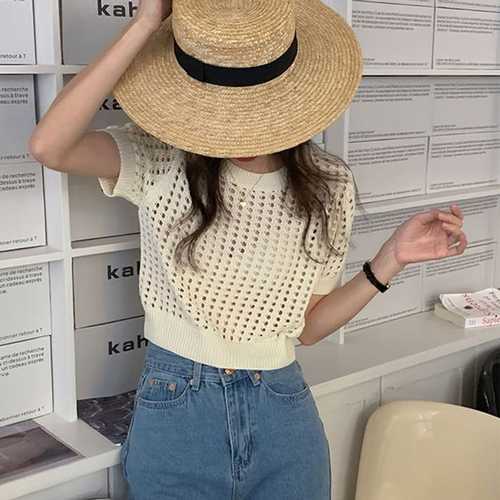 슈팅스타 / 뜨개 짜임 시스루 펀칭 크롭 여름 니트 반팔티 19025