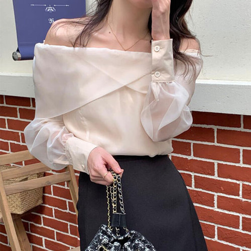슈팅스타 / 오프숄더 시스루 페미니한 간절기 블라우스870640