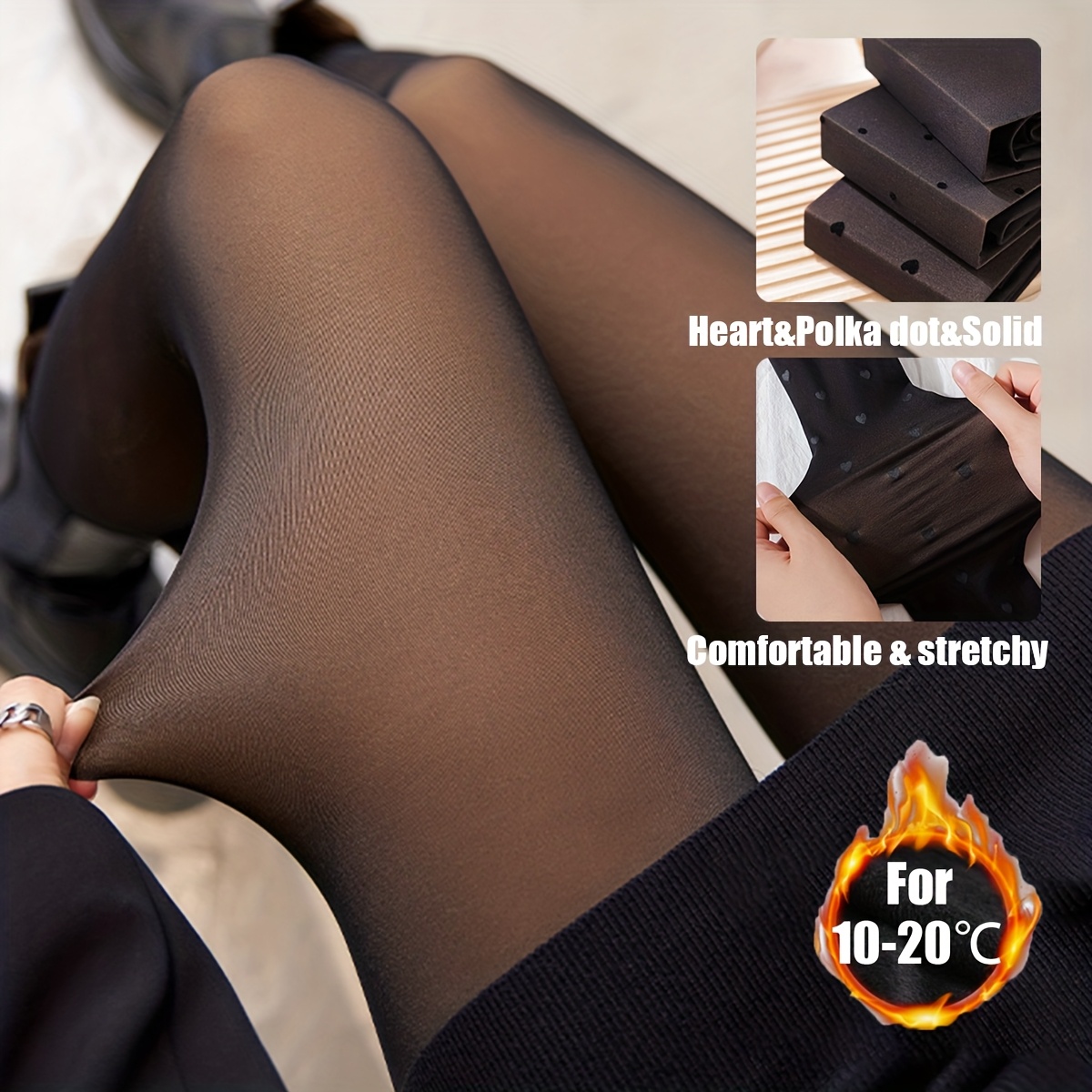 TEMU 여성용 하이웨이스트 따뜻한 팬티스타킹 - 겨울용 플러시 소프트 탄력 레깅스, 솔리드 컬러, 신축성 핏, 플리스 안감 레깅스, 우아한 반투명 이뮬레이션 레깅스, 캐주얼 파티에 적합