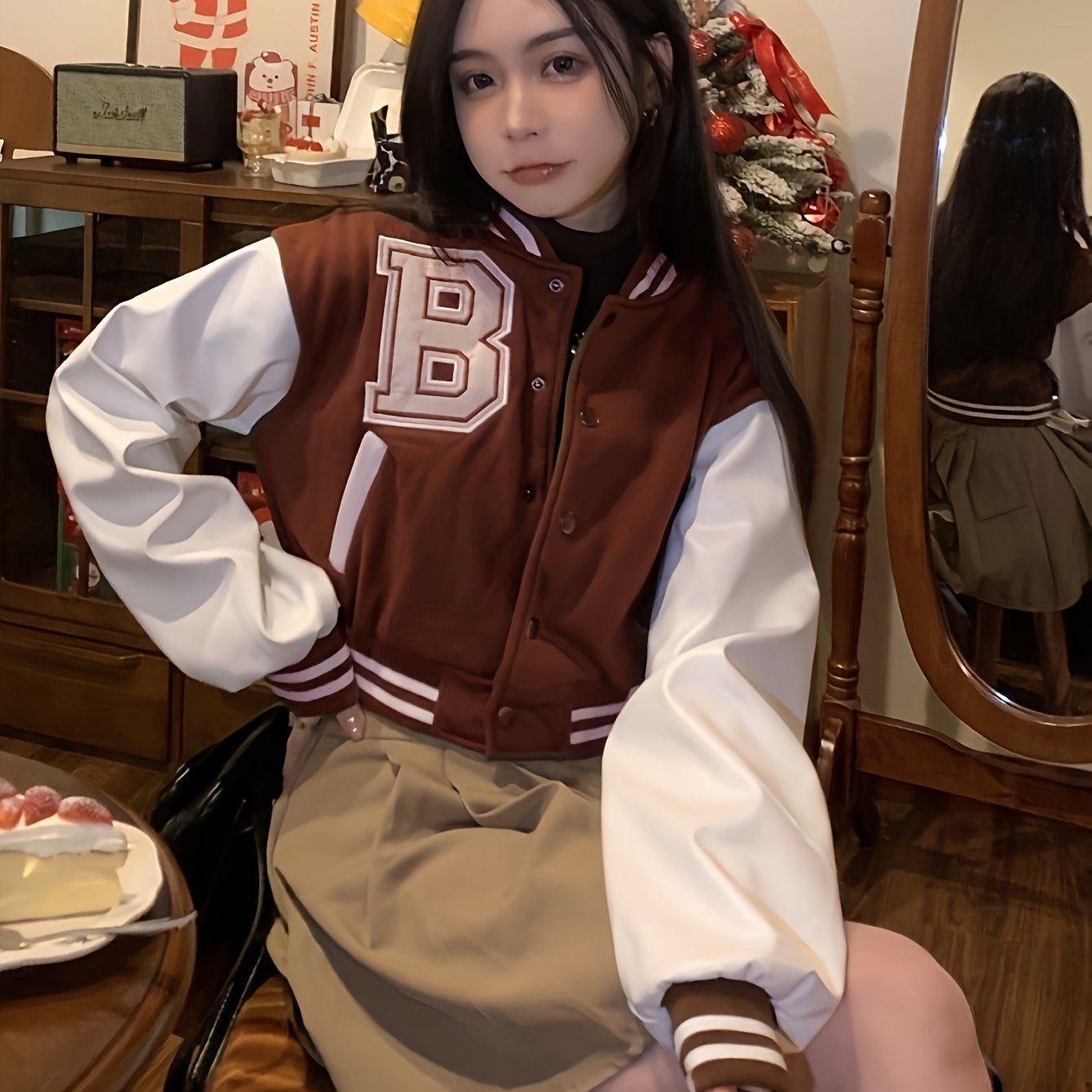 TEMU 여성을 위한 새로운 루즈핏 커피색 야구 점퍼, 2025년 봄/가을 디자인, 짧은 키에 적합