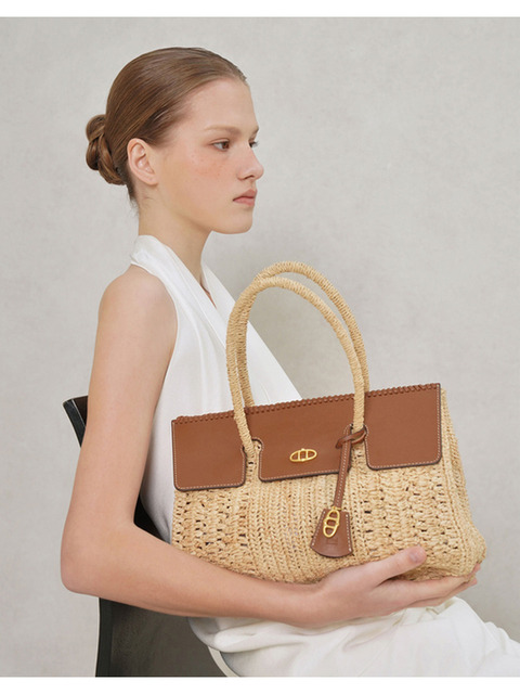 [아떼 바네사브루노 백] [RAFFIA] 브라운 라피아 토트백 M AABA5E805W2