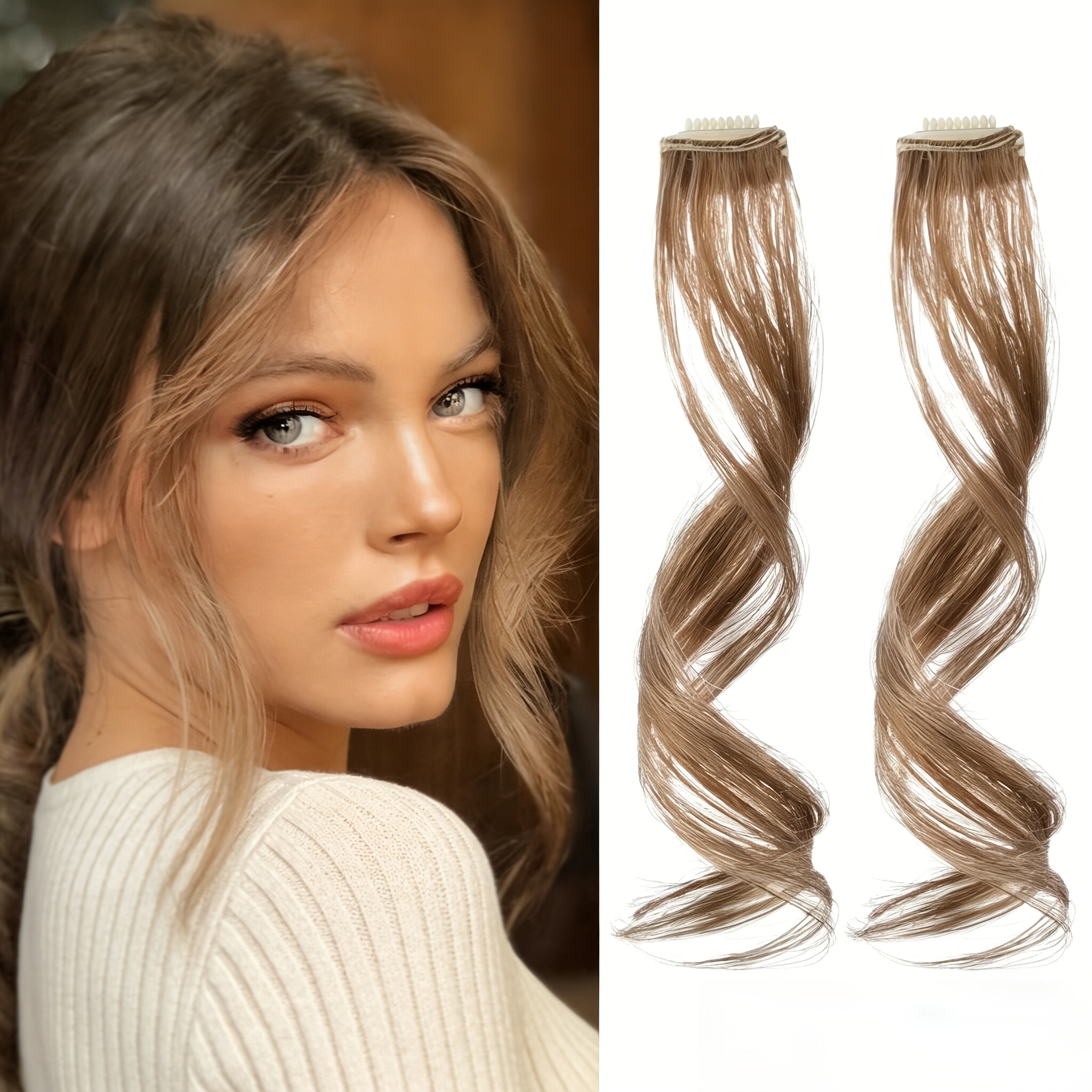 TEMU 여성용 골드 컬러, 40cm/16인치 길이의 옆머리 웨이브 클립인 프린지 합성 가발 2개 세트