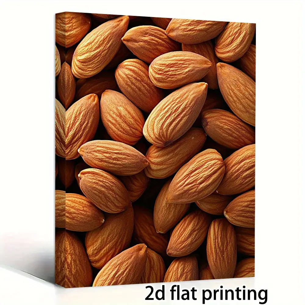 TEMU 2D 플랫, 2D 플랫, 나무 프레임과 프린트된 캔버스가 특징인 2D 장식 그림. 밝은 갈색 배경에 현실적인 견과류 디자인의 아몬드 벽걸이 예술 작품을 선보입니다. 모던한 농가 주방, 거실 및 사무실 공간에 이상적입니다.