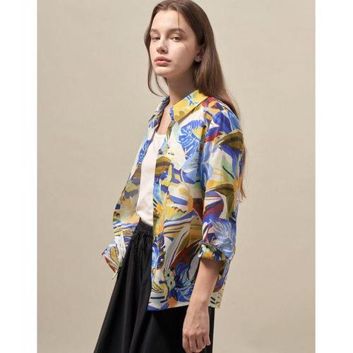 [크로커다일레이디]크로커다일레이디 (CLEMBL121) 면아사 풀오픈 프린트 블라우스_GN