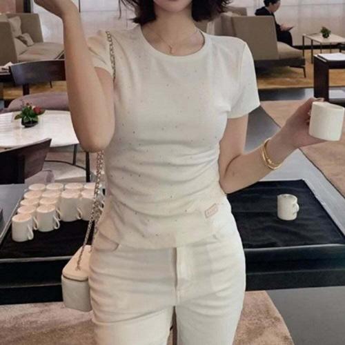 [오너클랜]인기상품 여성 반짝 큐빅 반팔티 1P 슬림핏 베이직 티셔츠 패션 [WFJM7ZP_251120]