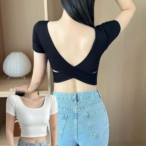 [오너클랜]인기상품 여성 백리스 캡내장 크롭 반팔티 1P 기본 무지 티셔츠 [WFJM7YS_251120]