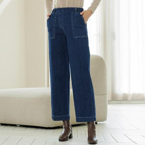 아웃사이즈 OA1019 빅사이즈 여성 스트링 밴딩 와이드레그 스트레이트 청바지 데님 팬츠