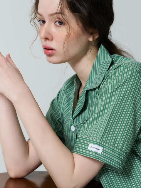[아워호프] Stripe Shirring Pique T-Shirt - Green [H25SP2-TS33-GRN]