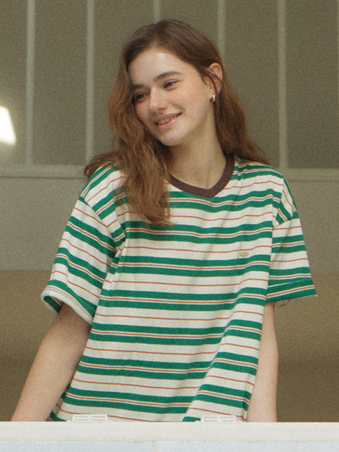 [아워호프] 오버핏 로고 스트라이프 티셔츠 - 그린