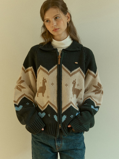 [아워호프] 알파카 패턴 코위찬 니트 가디건 - 그린