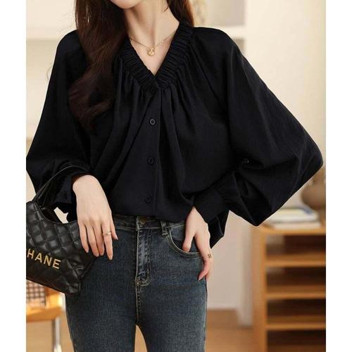 [셀럽하우스]F007114_셔링V넥 QJWT4989 루즈핏블라우스 아이스셔츠