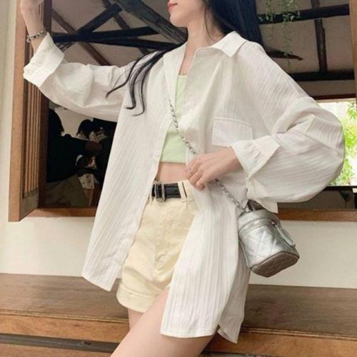 [라일리의류] Rly 여름 여성 시원한 반크롭 아이스 긴팔 블라우스 셔츠