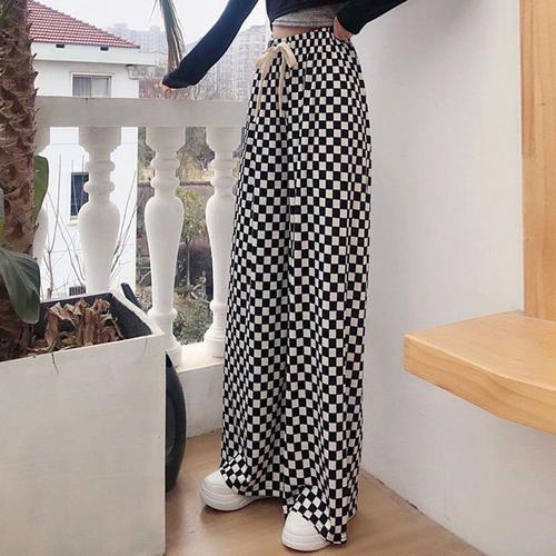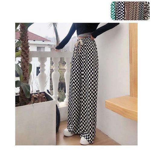 [옷자락]여자 보드 색상 고무줄 아이스 통 패턴 체커 넓은 바지