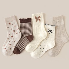 [셀러허브_여성트랜드패션]플라워 여자아이양말 패턴 목긴 5족 꽃양말
