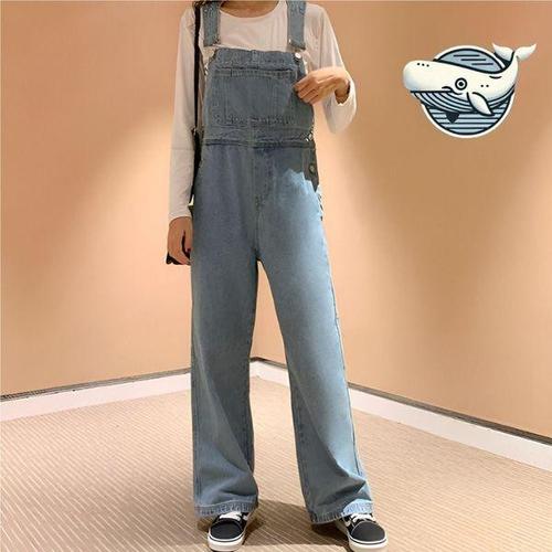 [신상오픈런]여자 키치무드 데님 멜빵 오버롤 일자핏 팬츠