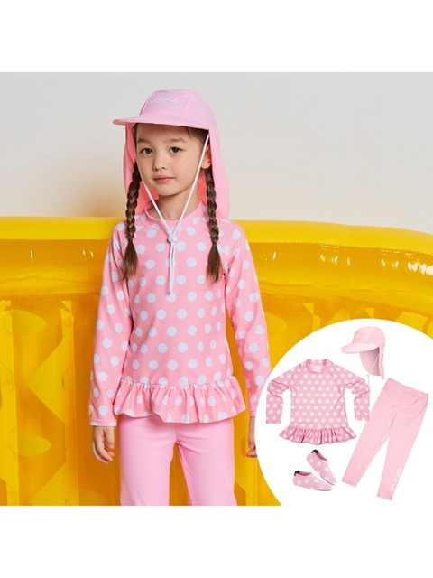 [아이스샌드] 아이스샌드 키즈 유아 여아동래쉬가드 5피스세트(상의+하의2+플랩캡+아쿠아슈즈) BR-880773K