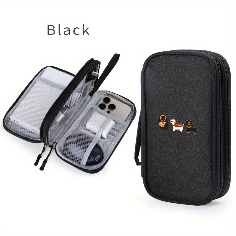 TEMU 1개 귀여운 다치슈운드 프린트 다기능 이중 레이어 가방 ID 보관 멀티 레이어 여성용 보관 클러치, 손목 스트랩 데이터 케이블 보관 가방 디지털 추가 파워 뱅크 모바일 하드 드라이브 보호 케이스 보관 정리함, 지퍼 헤드 랜덤