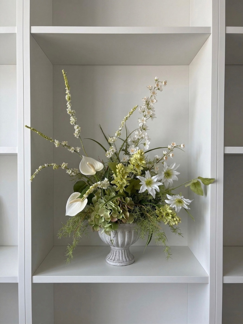 실크플라워 그린 화이트 안시리움 조화 센터피스 인테리어 화분 소품