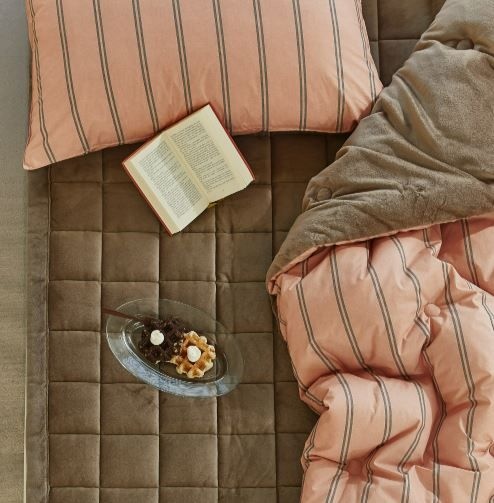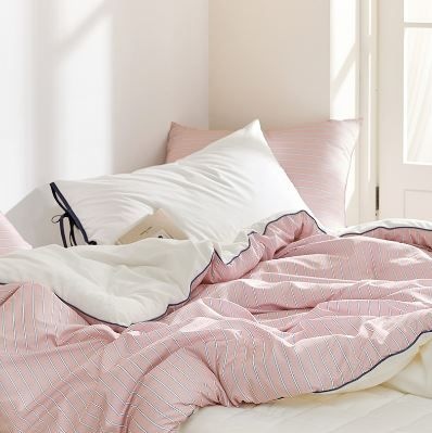 따뜻한 겨울 두잉 알러지케어 스트라이프 밍크극세사 다운필 차렵이불세트
