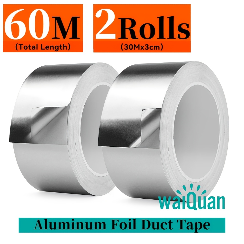 TEMU 2개 팩 알루미늄 포일 테이프, 총 길이 60M X 3CM 고강도 금속 포일 테이프, 고온 실버 덕트 테이프, 밀봉 및 패치, HVAC, 에어 덕트, 단열 및 금속 수리에 적합 (Walquan)