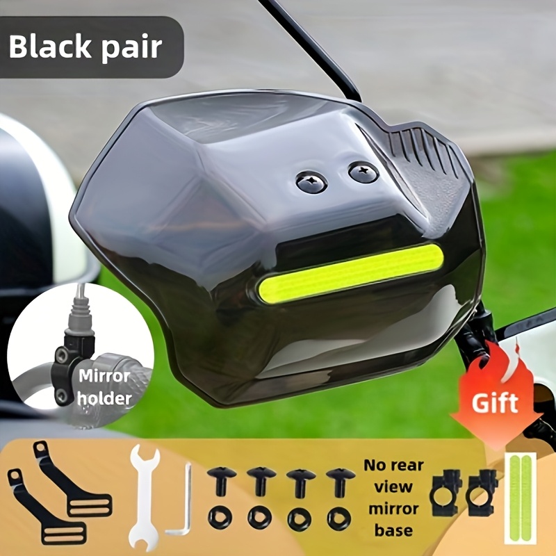 TEMU 1쌍 블랙 방풍 방수 핸드가드 (반사 미러 마운트 포함) - 스트리트 바이크, 전기 스쿠터, 자전거용, 내구성 PVC 소재, 육각형 디자인, 야간 가시성 강화