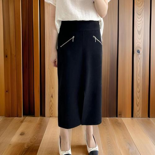 [신상오픈런]여성용 사선포켓 지퍼 앞트임 롱스커트 (33138354)