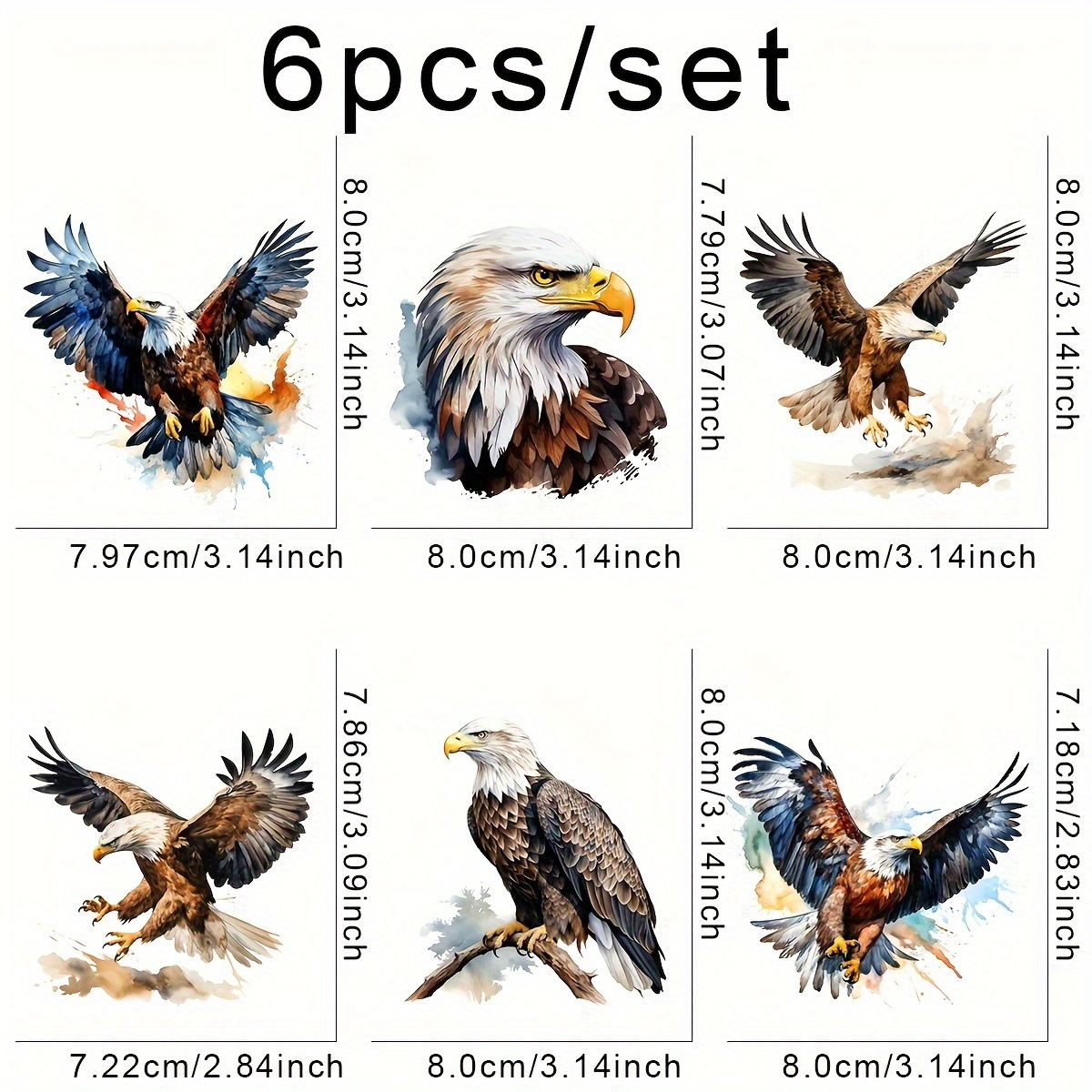 TEMU 6개입 이글 열전사 데칼 - 펄럭이는 날개를 가진 리얼리스틱 새 디자인, 세탁 가능 & 오래가는 DIY 다림질 패치 (티셔츠, 청바지, 가방, 마스크용) - 야생동물 애호가 및 아웃도어 어드벤처를 위한 아이템, 동적 모션 그래픽, 고품질 전사지, 공예 애호가를 위한 액세서리|등산모자