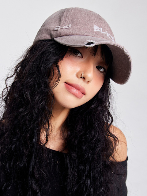 [블랙샌즈] 컬러 브러쉬 워싱 데님 볼캡 애쉬핑크