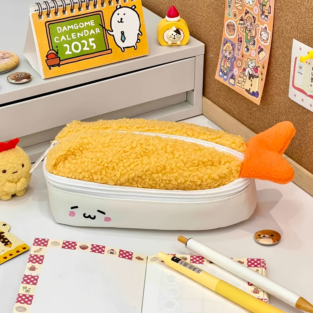 TEMU 귀여운 새우 플러시 메이크업 파우치 지퍼 포함 - 여성, 청소년을 위한 부드러운 화장품 정리함, & 화장품 보관, 사랑스러운 새우 모양 파우치|파우치