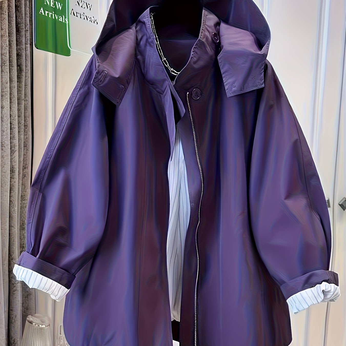TEMU 여름/가을용 여성용 미디 기장 후드 트렌치 코트, 다용도, 루즈핏, 캐주얼하고 스타일리시한 재킷