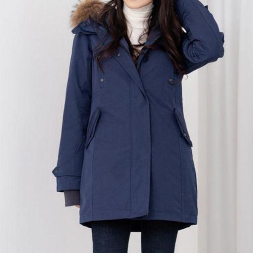 헤지스 여성 [스테디셀러][덕다운] 네이비 야상형 논퀼팅 롱 헤비다운 점퍼 (WSJU4D016N2)